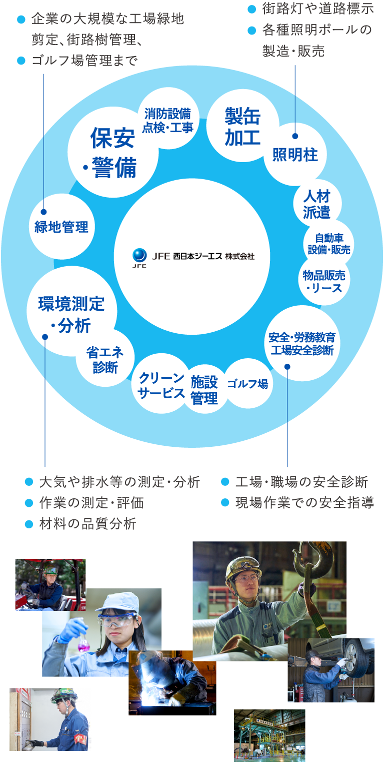 | こんな方を歓迎します | SDGsの浸透により環境問題への意識が向上する中、環境保全に興味のある方 チームワークや協調性を大切にして働ける方 |